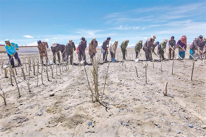 圖為阿里地區(qū)多瑪鄉(xiāng)群眾在植樹。記者 格桑吉美 攝