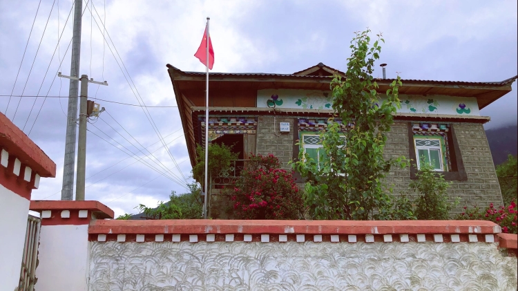 據(jù)色果拉村村支書介紹,色果拉村居民喜愛把鮮艷的五星紅旗插在屋頂,以往由于風(fēng)沙大,經(jīng)常把插在屋頂?shù)膰齑低?,于是村民自發(fā)在每家每戶門前修建了升旗臺(tái),每到國慶、“七一”等重大節(jié)日,都會(huì)舉行升旗儀式。另外,村委會(huì)有專門的舊國旗回收箱,用來收納村民家里的舊國旗,村民上交舊國旗可以換取新的國旗。
