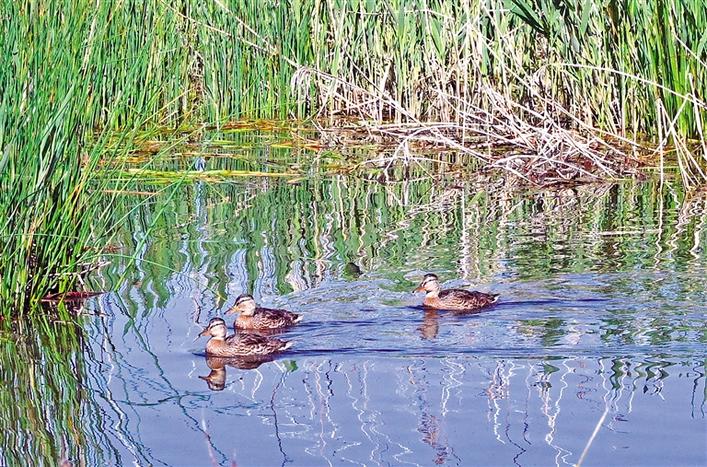 夏日的拉魯濕地美如畫。這是野鴨在拉魯濕地的水面上游弋。記者 洛桑 攝