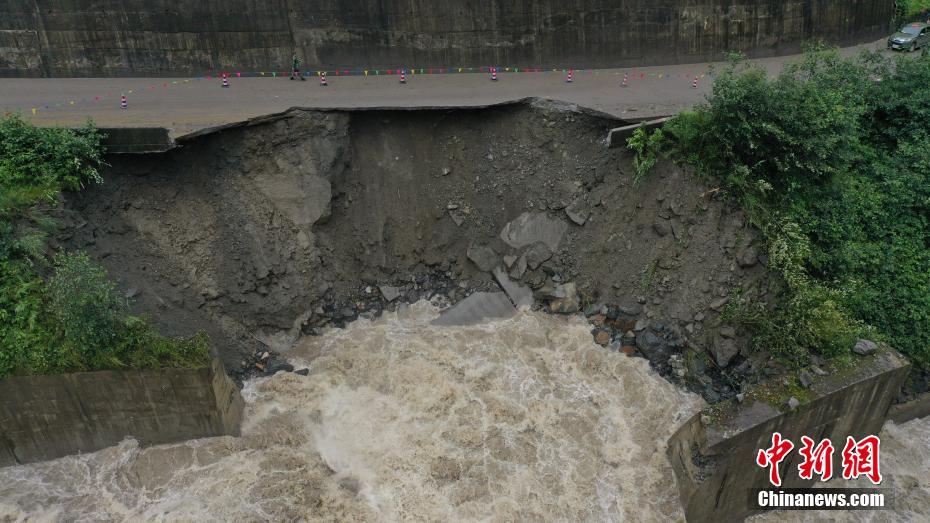 7月21日,G318線川藏公路西藏林芝巴宜區(qū)至波密縣路段一處路基整體垮塌。當日,因為連日降雨,該路段多處發(fā)生泥石流、山體滑坡、落石等自然災害,目前人員車輛均已中斷通行,搶通預計需7至10天。中新社發(fā) 袁鈺 攝