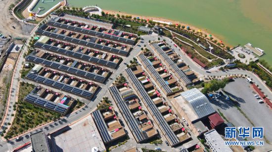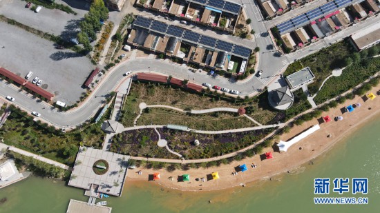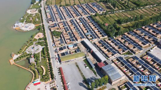 從高處俯瞰,屋頂上一片片光伏發(fā)電板排列整齊。新華網(wǎng) 卡婭梅朵 攝