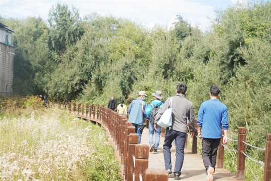9月初,濕地里的花草樹木從夏天的翠綠到初秋的泛黃,成為了拉魯濕地另一番美景?!∪藗冊诓叫衅溟g,呼吸著充足的氧氣,情緒高漲,邁開輕快而有力的步伐,沿著拉魯濕地步道健步前行,時而駐足觀望沿途美景,時而聚集一方合影留念,不僅鍛煉了身體,又領(lǐng)略了自然風(fēng)光,也陶冶了情操。