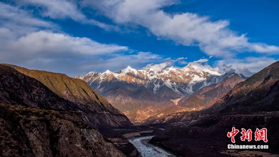 此時在雅魯藏布大峽谷,還能一眼望到“中國最美山峰”南迦巴瓦峰,海拔7782米的她已不是“十人九不見”,而是難得地露出了“直刺藍(lán)天戰(zhàn)矛”的真顏。