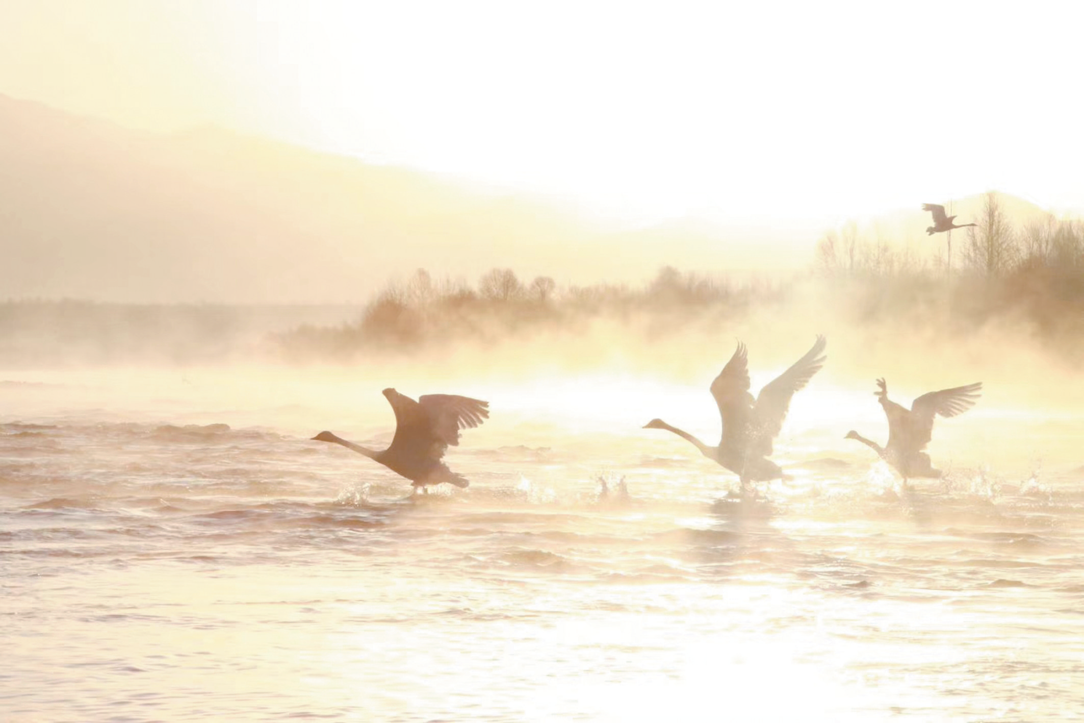 正棲息于黃河岸邊的大天鵝。