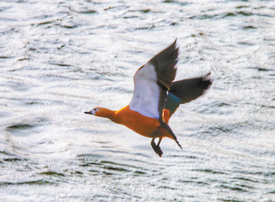 黃河畔飛翔的赤麻鴨。