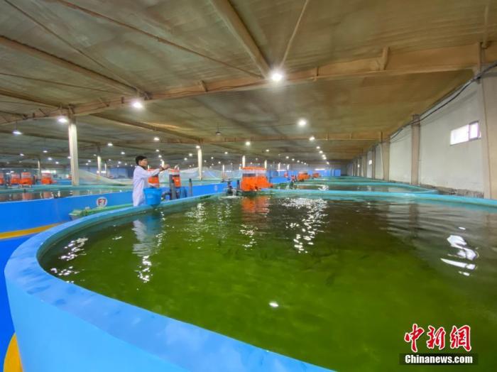 資料圖為2020年12月28日拍攝的青海湖裸鯉救護中心循環(huán)水恒溫育苗車間。 中新社記者 李江寧 攝