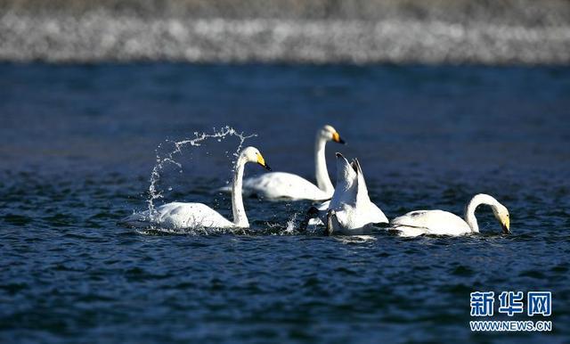 隨著氣溫回暖,位于青海省海南藏族自治州貴德縣境內(nèi)的黃河成為大天鵝的越冬“港灣”,它們?cè)诖艘捠?、休憩,為冬日的黃河帶來勃勃生機(jī)。