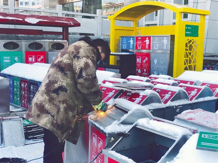 安裝在居民小區(qū)內(nèi)的垃圾分類投放箱