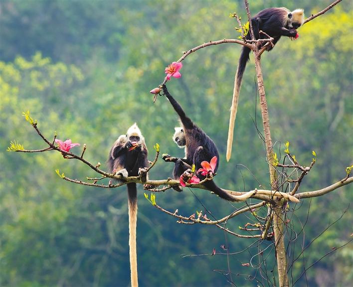在廣西崇左白頭葉猴國家級(jí)自然保護(hù)區(qū)拍攝的白頭葉猴(資料照片)。新華社發(fā) (廣西崇左白頭葉猴國家級(jí)自然保護(hù)區(qū)提供)