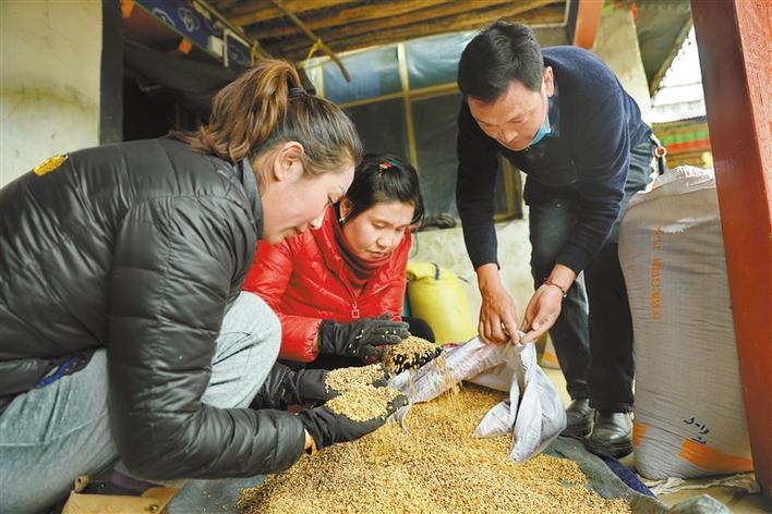 圖為墨竹工卡縣農業(yè)農村局(農業(yè)技術推廣站)工作人員選購青稞種子。洛??酥?唐斌 攝
