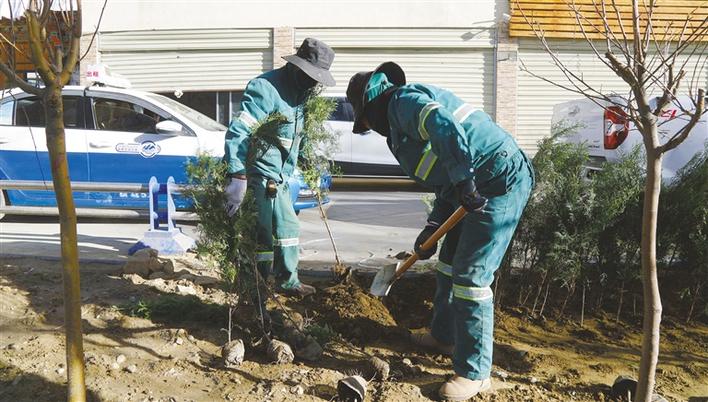 拉薩城關(guān)區(qū)潔達(dá)園林公司工作人員開展春季市區(qū)補(bǔ)植補(bǔ)栽工作。