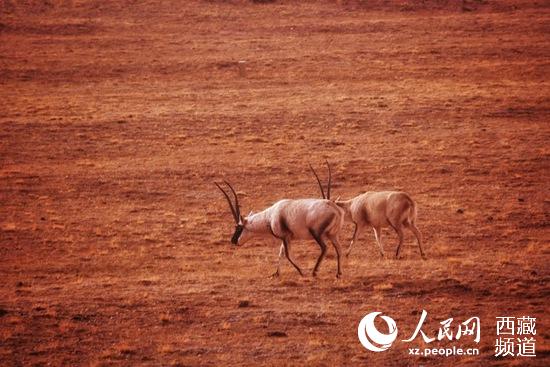 羌塘自然保護(hù)區(qū)內(nèi)的藏羚羊。 人民網(wǎng) 李海霞攝