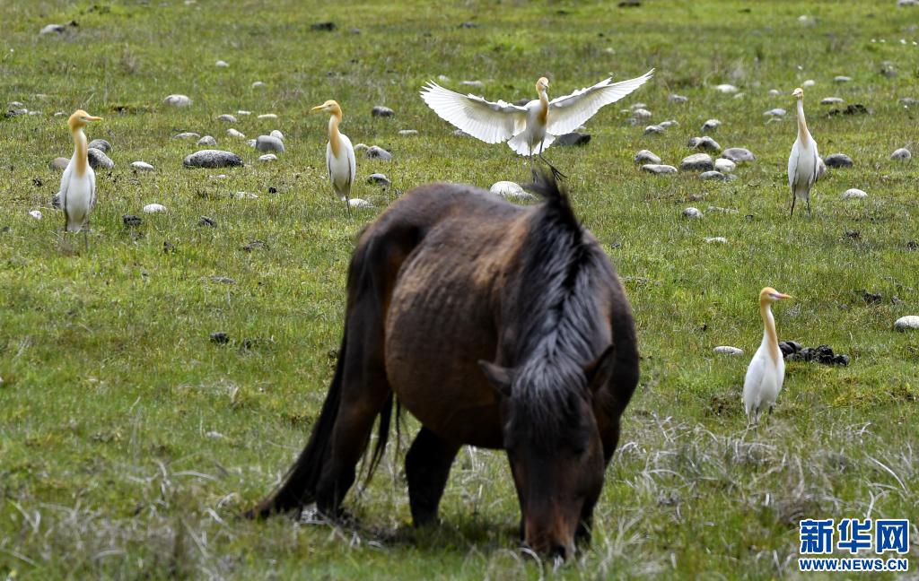 5月23日,牛背鷺在易貢國家地質(zhì)公園棲息。新華社記者 張汝鋒 攝