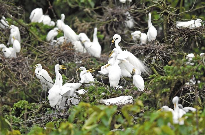 近期,在位于鄱陽(yáng)湖畔的江西省南昌市新建區(qū)象山森林公園內(nèi),已安家筑巢的鷺鳥(niǎo)進(jìn)入孵化哺育旺季。象山森林公園有著“鷺鳥(niǎo)王國(guó)”的美譽(yù),每年都會(huì)吸引白鷺、蒼鷺、夜鷺等種類的鷺鳥(niǎo)飛抵棲息和繁衍后代。 白鷺在南昌市新建區(qū)象山森林公園內(nèi)棲息(5月18日攝)。新華社記者 萬(wàn)象 攝