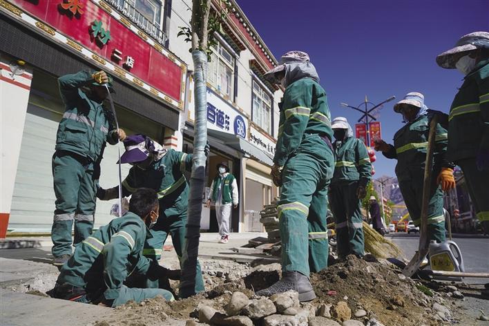 4月23日,記者在拉薩市朵森格路北段看到,道路兩旁正在栽種新樹木——大葉女貞。[詳細(xì)]
