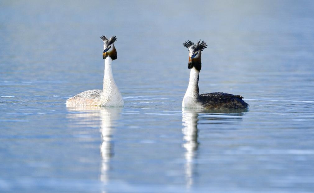 夏日里,鳳頭??和小??在西藏拉薩拉魯濕地國(guó)家級(jí)自然保護(hù)區(qū)水面上嬉戲。[詳細(xì)] -