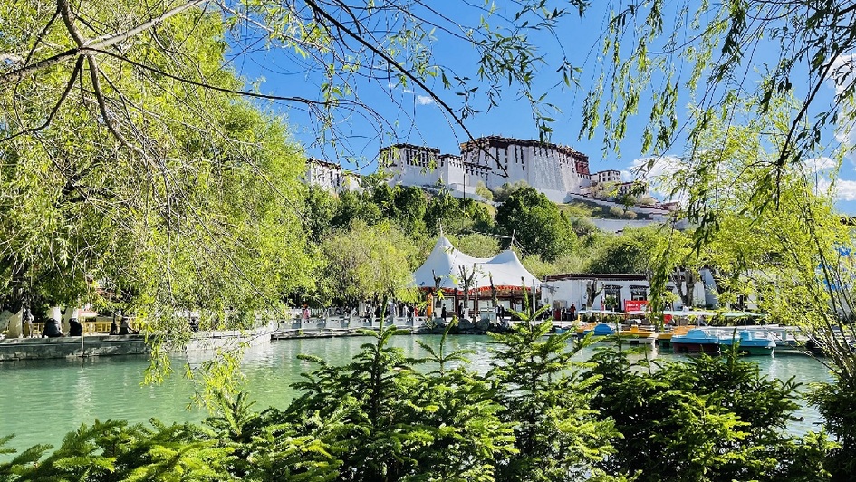 從宗角祿康公園仰望布達(dá)拉宮(6月14日攝)。 羅布曲珍 攝