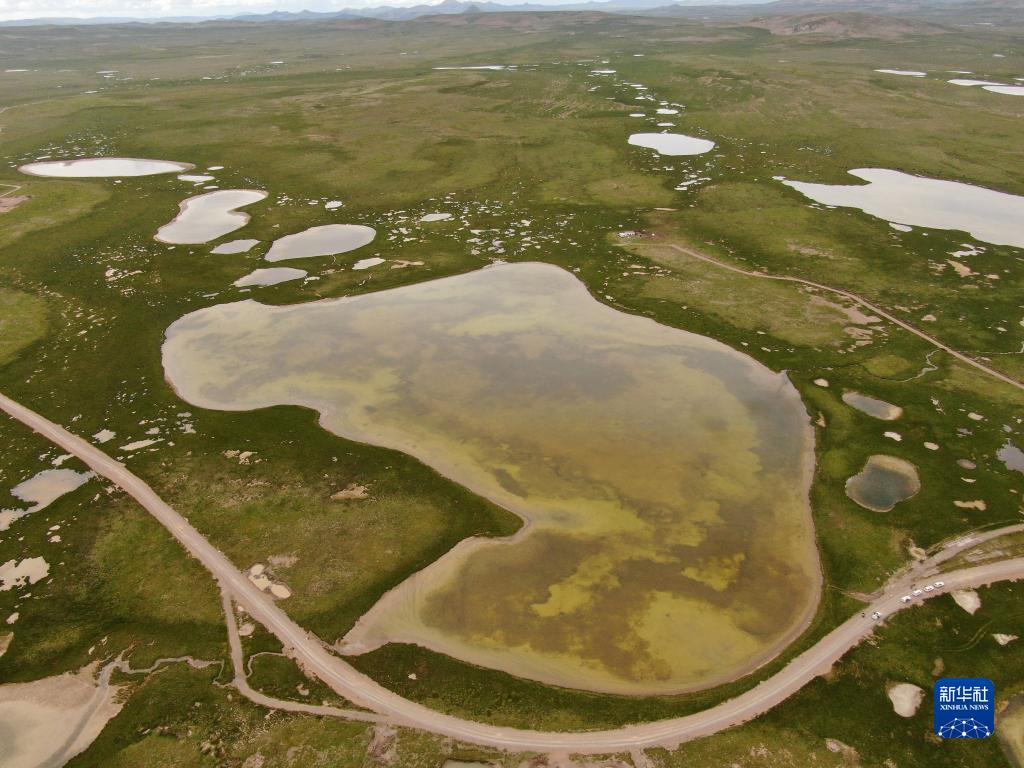 這是7月23日拍攝的長(zhǎng)江源地區(qū)的查旦濕地(無(wú)人機(jī)照片)。新華社記者 張龍 攝