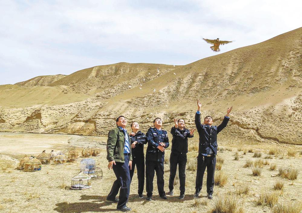 森林公安將救助的鳥類放回大自然。