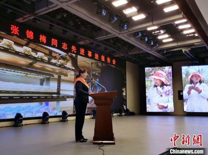 圖為張錦梅同志先進事跡巡回報告會啟動儀式及首場報告會現場。 張?zhí)砀!z