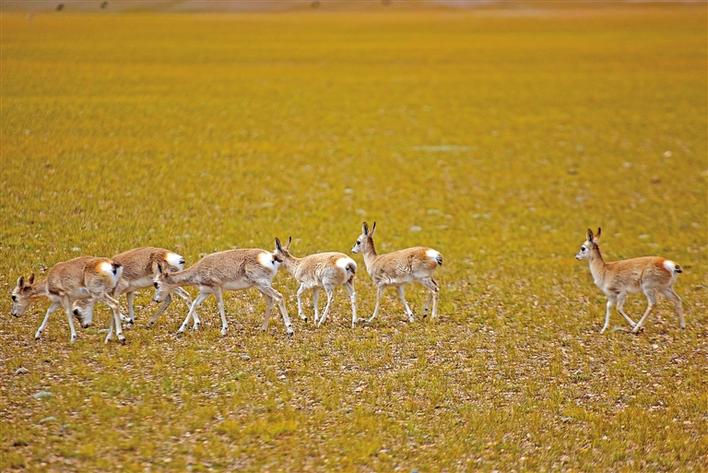 在羌塘國家級自然保護區(qū)拍攝的藏羚羊。新華社記者 孫瑞博 攝