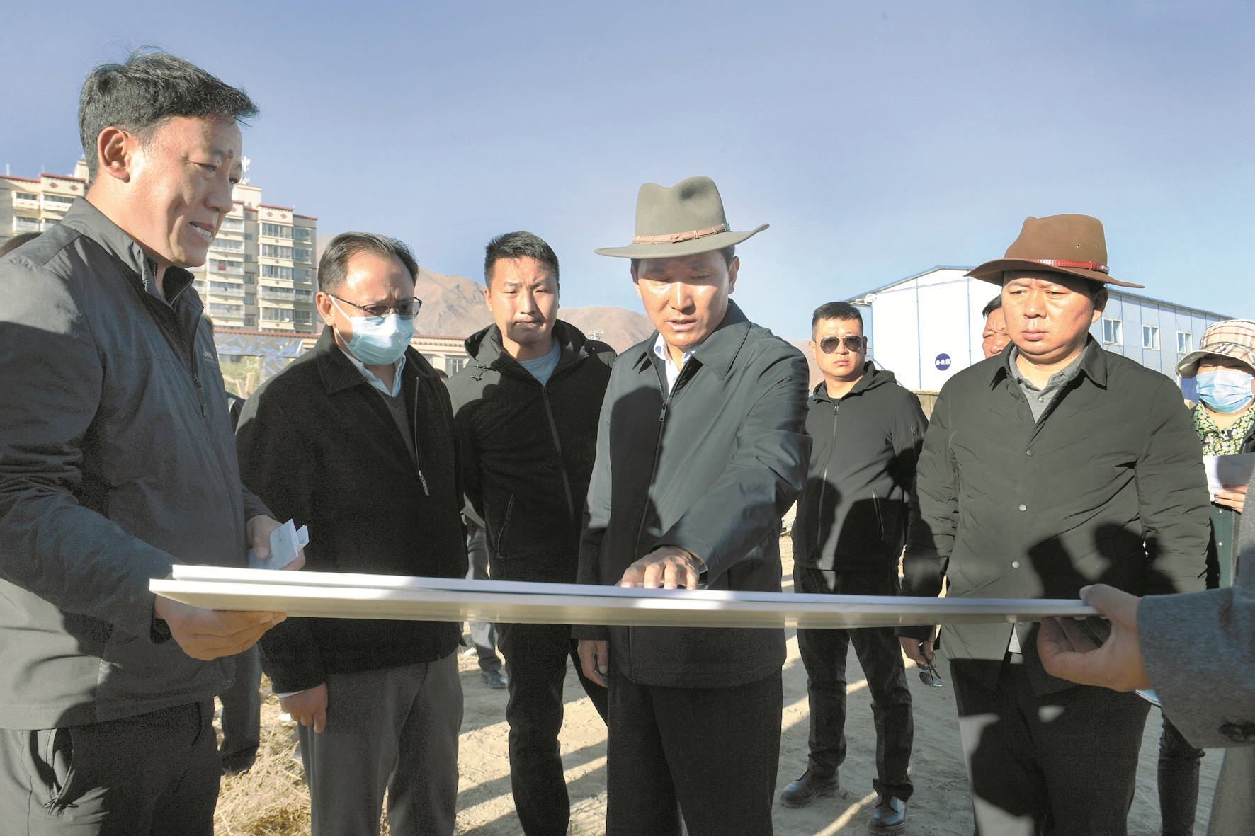 11月10日下午,市委副書記、市長果果實地調(diào)研納金水源地城市水系取水情況及我市固定資產(chǎn)投資、重點項目推進情況。圖為果果詳細了解拉薩城投房地產(chǎn)項目建設情況。拉薩融媒記者 巴桑次仁攝