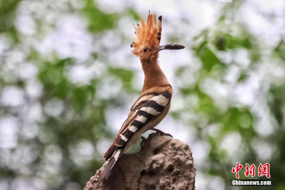 "星點花冠道士衣,紫陽宮女化身飛。"近日,青海省攝影家利用近一個月的時間在青海省海東市拍攝記錄到稀有物種戴勝鳥哺育幼鳥生長的畫面,實屬珍貴。戴勝鳥常棲息于山地、森林、平原、河谷和農(nóng)田,主要以蟲類為食,為益鳥,是以色列國鳥,列入《世界自然保護聯(lián)盟瀕危物種紅色名錄》《中國國家保護的有益的或者有重要經(jīng)濟、科學(xué)研究價值的陸生野生動物名錄》。其外表艷麗,呈斑馬紋羽毛,頭頂羽冠,嘴巴細長而尖,非常漂亮。 記者孫睿 莫存學(xué) 攝