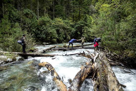 科研人員在調(diào)查途中。圖片由山水自然保護(hù)中心提供