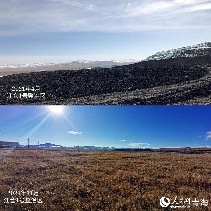 木里礦區(qū)江倉1號(hào)礦復(fù)綠前后對(duì)比。人民網(wǎng) 甘海瓊 攝