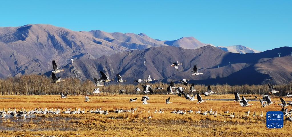 唐嘎鄉(xiāng)位于拉薩市達(dá)孜區(qū)東北部,這里每年冬季都會(huì)迎來(lái)黑頸鶴、斑頭雁、赤麻鴨等候鳥(niǎo)。這些在此越冬的“客人”和周邊的田園、濕地共同構(gòu)成高原冬季美景。