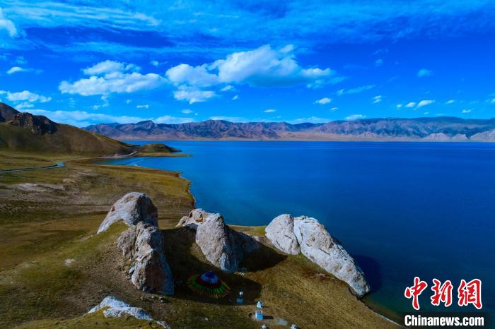 圖為黃河源頭湖泊在藍(lán)天下如圖明鏡。 瑪多縣委宣傳部 供圖