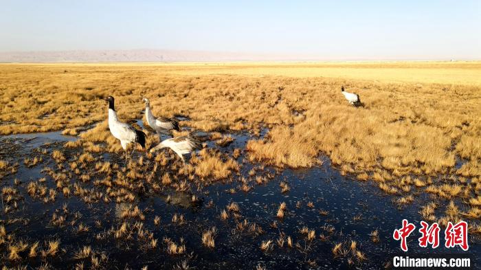 圖為柴達木盆地內的野生黑鶴?!跆m縣委宣傳部 供圖
