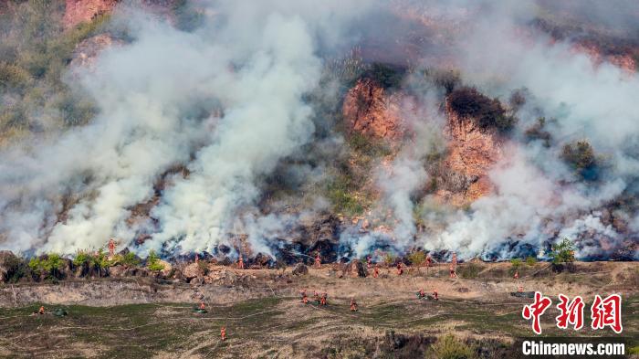 圖為3月2日,云南森林草原火災(zāi)應(yīng)急處置聯(lián)合實(shí)戰(zhàn)演練現(xiàn)場?!≡颇鲜∩窒揽傟?duì) 攝