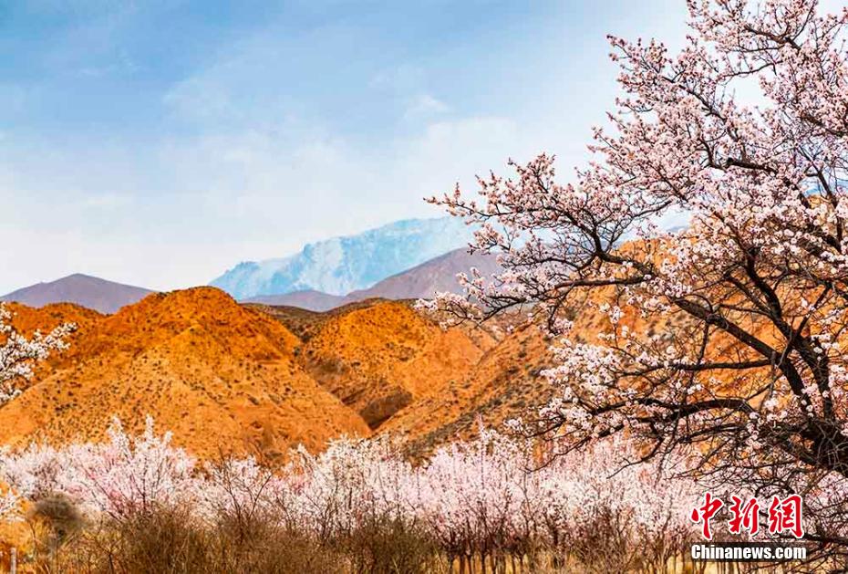 陽春三月,黃河岸畔,素有“高原小江南”之稱的青海省海南藏族自治州貴德縣尕讓鄉(xiāng)阿什貢村的杏花開滿了枝頭,丹霞地貌與杏林互映,五彩繽紛,高原大地生機盎然。 趙海梅 攝