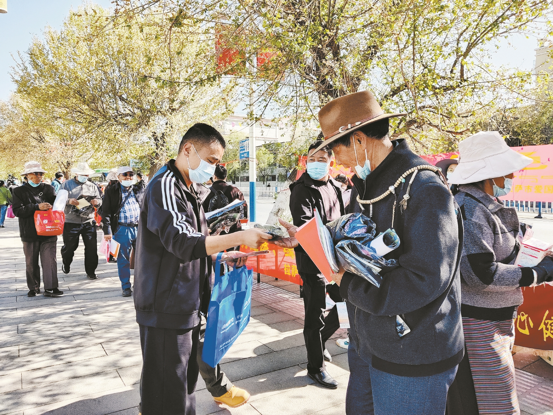 活動(dòng)現(xiàn)場(chǎng),拉薩市人民醫(yī)院設(shè)立的義診點(diǎn),吸引了不少市民前來(lái)檢查,醫(yī)生耐心地為來(lái)往市民測(cè)量血壓,答疑解惑,提出診療建議,講解保健常識(shí),并根據(jù)病癥和個(gè)體差異發(fā)放了藥品。