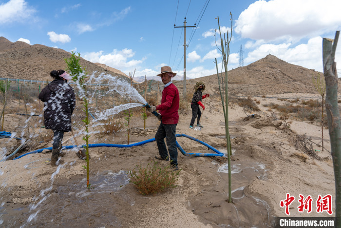 他說(shuō),雅魯藏布江兩岸的沙地多是流動(dòng)沙,沙土沒有樹木生長(zhǎng)所需的營(yíng)養(yǎng),種樹前先要填生物肥、秸稈等。此外,樹苗還面臨夏季沙地溫度過(guò)高以及水源缺乏等問題?!半m然地處江邊,但種樹點(diǎn)離河道有五六公里甚至更遠(yuǎn)?!泵侠麞|說(shuō),他們篩選、馴化本地植物作為種苗,澆灌水源采取就地打井的方式取水,在沙地上植樹造林。
