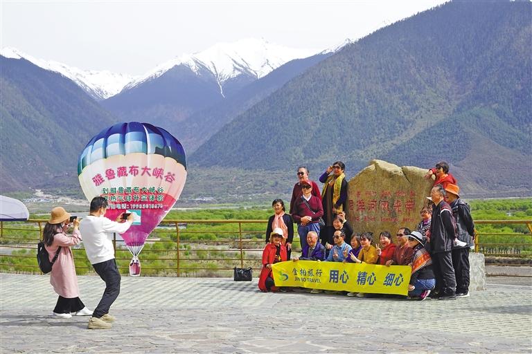 圖為游客在雅尼國(guó)家濕地公園合影。記者 益西加措 索央 攝