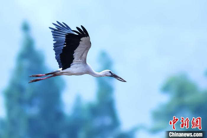 飛翔的鉗嘴鸛?!≈軐W峰 攝