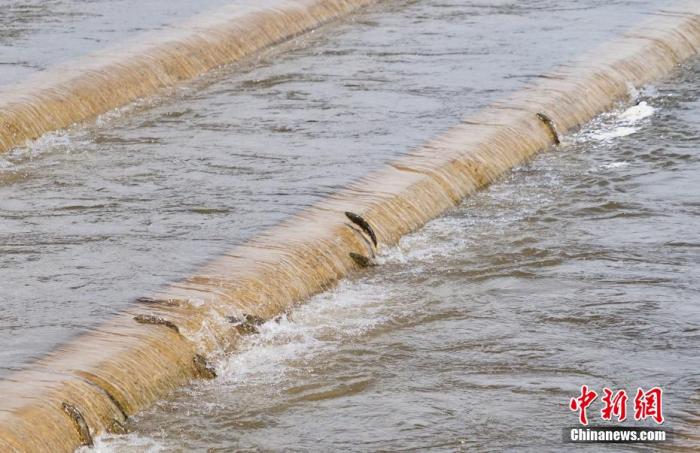 在泉吉河中,記者看到,河道內(nèi)密密麻麻的湟魚正逐級跳躍專門為其修建的洄游通道。其中,還有一些被水流沖退的湟魚重新在河道內(nèi)蓄勢待發(fā)。