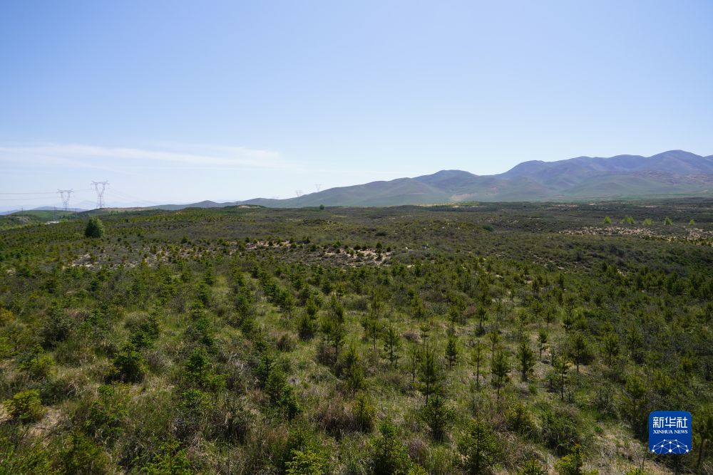 6月16日拍攝的綠植覆蓋的克圖治沙點(diǎn)。新華社記者 李琳海 攝