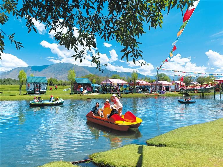 時下,正是“過林卡”的最好時節(jié),為了吸引客源、招攬生意,林卡經(jīng)營者不斷完善基礎(chǔ)設(shè)施,搭建漂亮的帳篷,提供特色服務(wù),滿足市民游客戲水、劃船、健身運(yùn)動和特色美食等需求。