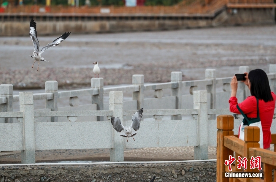 8月11日,青海省海北藏族自治州剛察縣,沙柳河國家濕地公園內的大量水鳥吸引游客。 中新社記者 賈天勇 攝