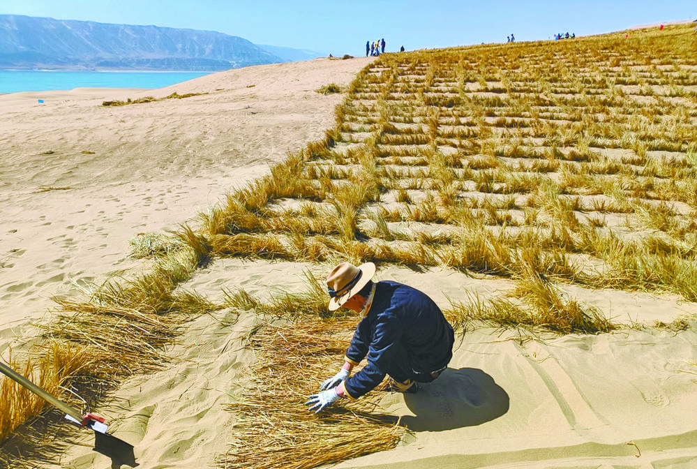整齊排列的草方格,隨風(fēng)搖曳的烏柳樹,生機(jī)勃勃。青海省海南藏族自治州共和縣龍羊峽庫區(qū)北岸——曾經(jīng)的不毛之地,如今已煥然一新,一條條綠色長(zhǎng)廊盡顯生命的力量。自生態(tài)項(xiàng)目建設(shè)以來,共和縣通過草方格沙障與烏柳插桿水鉆造林、檸條直播及沙蒿撒播相結(jié)合等方法進(jìn)行荒漠化治理,造林成活率達(dá)到90%以上,創(chuàng)造出龍羊峽北岸的“綠色奇跡”。