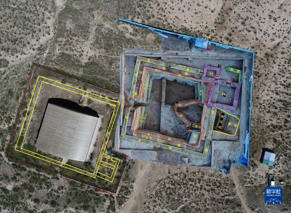 “2022年的工作重點是對2007QM1進行保護性清理發(fā)掘?!敝袊鐣茖W院考古研究所副研究員韓建華介紹,目前2007QM1清理發(fā)掘工作已經(jīng)完成。據(jù)介紹,2007QM1位于2018血渭一號墓西側,緊挨2018血渭一號墓西塋墻。早年已發(fā)掘出塋墻、地上建筑、墓道、甬道、照墻和墓室,但未公布考古資料。為保護展示遺址,經(jīng)重新發(fā)掘,確認該墓墓園形制和規(guī)模與2018血渭一號墓墓園相似。