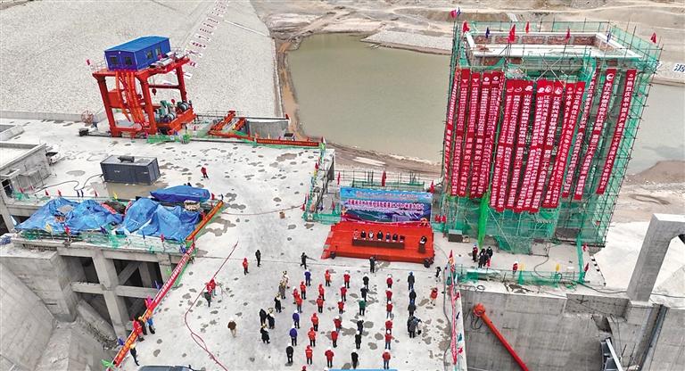 圖為湘河水利樞紐及配套灌區(qū)工程下閘蓄水現(xiàn)場(chǎng)。通訊員 趙亮 旦增羅布 記者 扎西頓珠 攝