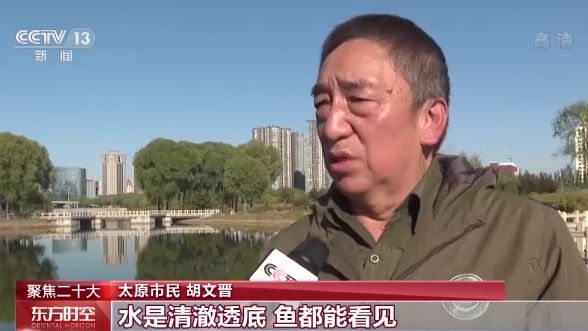 太原市民 胡文晉:水是清澈透底,魚都能看見,綠色比較多了,非常幸福,有獲得感、幸福感。二十大以后,我相信總書記會(huì)帶領(lǐng)我們過上更加幸福美滿的生活,更加環(huán)境優(yōu)美。