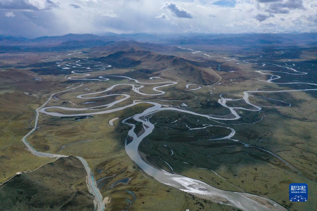 這是10月19日在四川省阿壩藏族羌族自治州若爾蓋縣拍攝的熱曲河(無人機(jī)照片)。新華社記者 王曦 攝