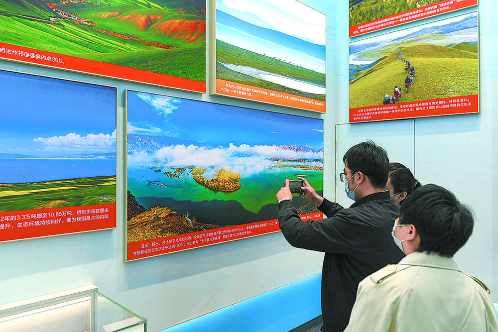 從三江源國(guó)家公園長(zhǎng)江北源楚瑪爾河出發(fā),中國(guó)最大內(nèi)陸咸水湖——青海湖、藏羚產(chǎn)仔地——可可西里卓乃湖、“天下黃河貴德清”黃河上游青海貴德段等一組照片向觀眾鋪開綠色青海的畫卷。