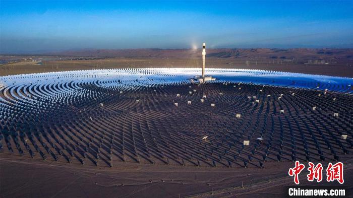 圖為10月16日,甘肅省敦煌市光電產(chǎn)業(yè)園區(qū)內(nèi),萬余面定日鏡以同心圓狀圍繞著260米高的吸熱塔?!⊥醣筱y 攝