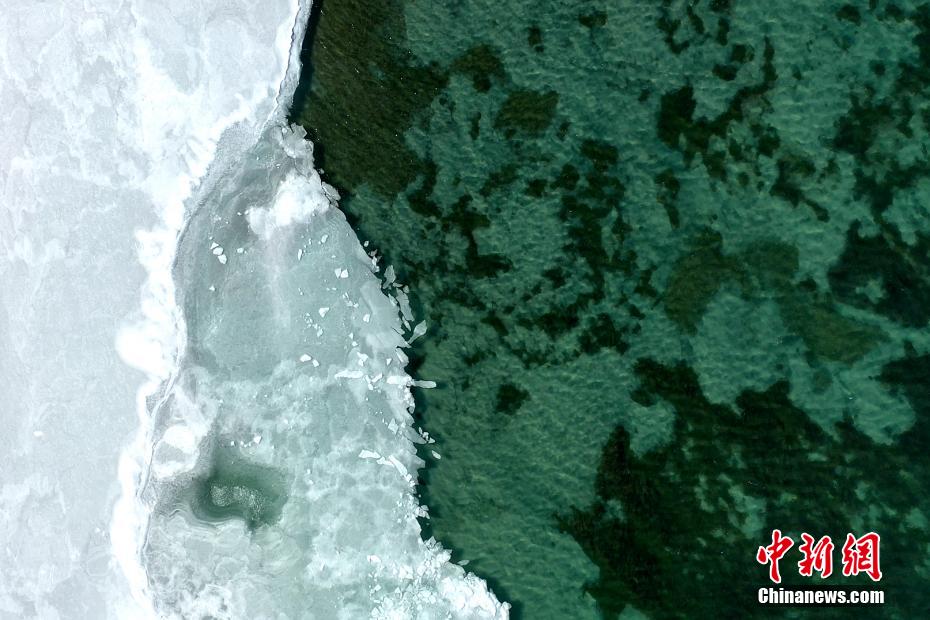 近日,素有“高原藍寶石”之稱的青海湖開始進入冰封期。青海湖水體周邊的零星結(jié)冰,青海湖西部邊緣、北部湖岸區(qū)、鳥島、青海湖斷崖等地出現(xiàn)成片結(jié)冰區(qū)。航拍畫面中可以看到湖心范圍尚有大面積未結(jié)冰區(qū)域。青海湖是中國最大的內(nèi)陸咸水湖。冬日里的青海湖,寧靜而內(nèi)斂。千里冰封,宛如童話世界。封凍的湖面如同破碎的“玉帶”,形成獨特的景觀。張世偉 攝